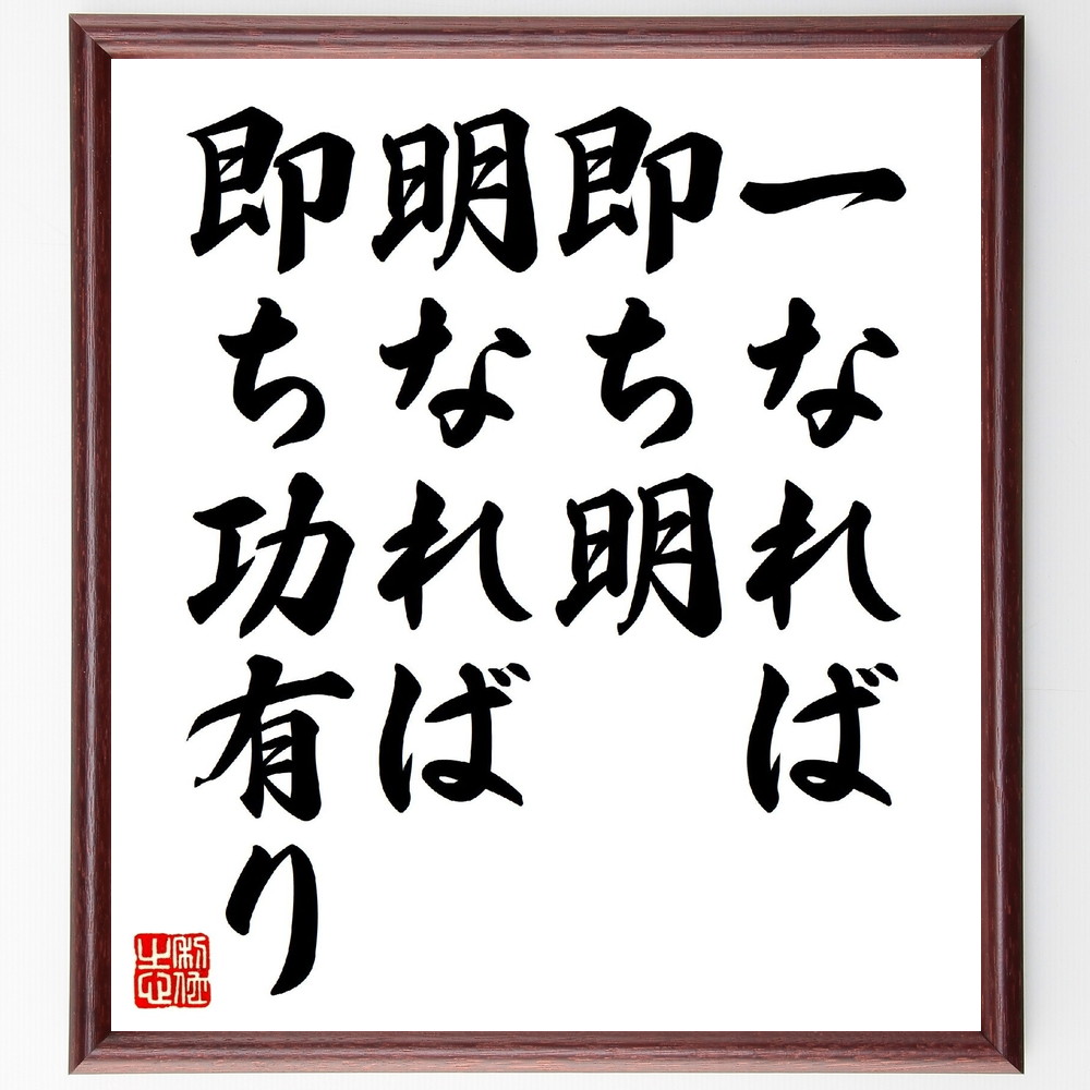 名言「一なれば即ち明、明なれば即ち功有り」手書き書道色紙額/受注後の毛筆直筆