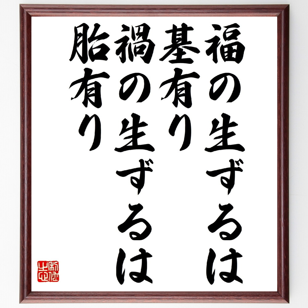 名言「福の生ずるは基有り、禍の生ずるは胎有り」手書き書道色紙額/受注後の毛筆直筆