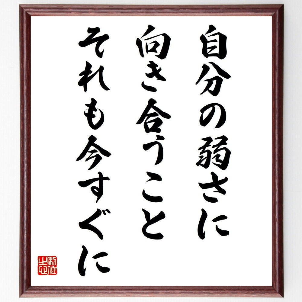 名言「自分の弱さに向き合うこと、それも今すぐに」手書き書道色紙額/受注後の毛筆直筆