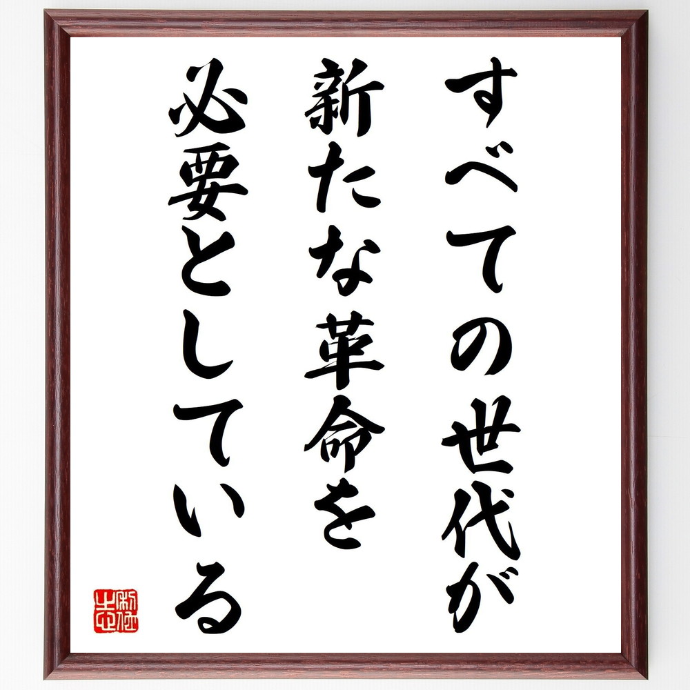 トーマス・ジェファーソンの名言「すべての世代が新たな革命を必要としている」を、千言堂の専属書道家が気持ちを込めて手書き直筆いたします。この言葉(ひとこと)は名言集や本・書籍などで紹介されることも多く、座右の銘にされている方も多いようです。ぜひ、ご自宅の玄関、リビング、部屋、書斎、またビジネスを営む会社のオフィスや店舗の事務所、応接室などにお飾りください。大切な方への贈り物・プレゼントにもおすすめです。一点一点が直筆のため、パソコン制作のような完璧さはございませんが、手書きの良さを感じていただけます。当店では挑戦、努力、成功、幸福、感謝、成長、家族、仕事、自己啓発など様々なテーマから人生の糧となる名言、四字熟語、諺、故事成語、格言を厳選、毛筆で直筆、お届けしています。