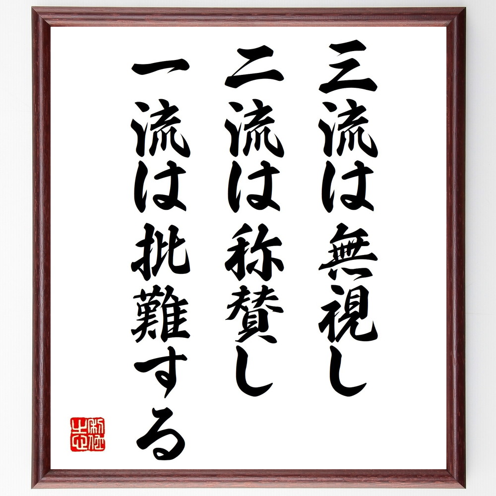 名言「三流は無視し、二流は称賛し、一流は批難する」手書き書道色紙額/受注後の毛筆直筆