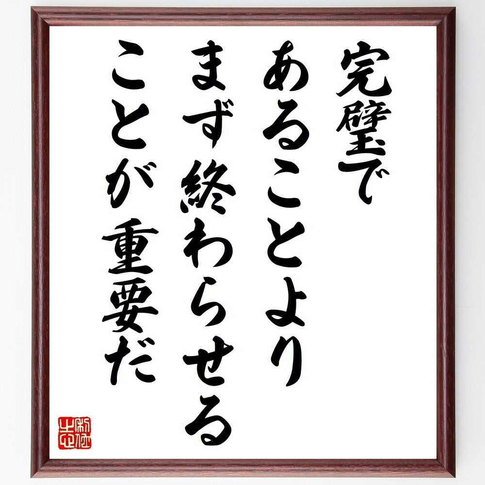 名言「完璧であることより、まず終わらせることが重要だ」手書き書道色紙額/受注後の毛筆直筆