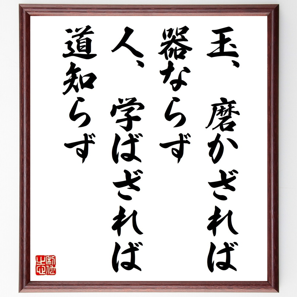 名言「玉、磨かざれば、器ならず、人、学ばざれば、道知らず」手書き書道色紙額/受注後の毛筆直筆