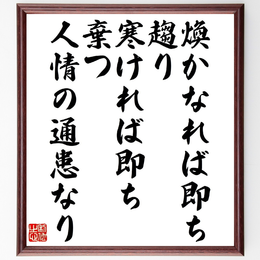 名言「煥かなれば即ち趨り、寒ければ即ち棄つ、人情の通患なり」手書き書道色紙額/受注後の毛筆直筆