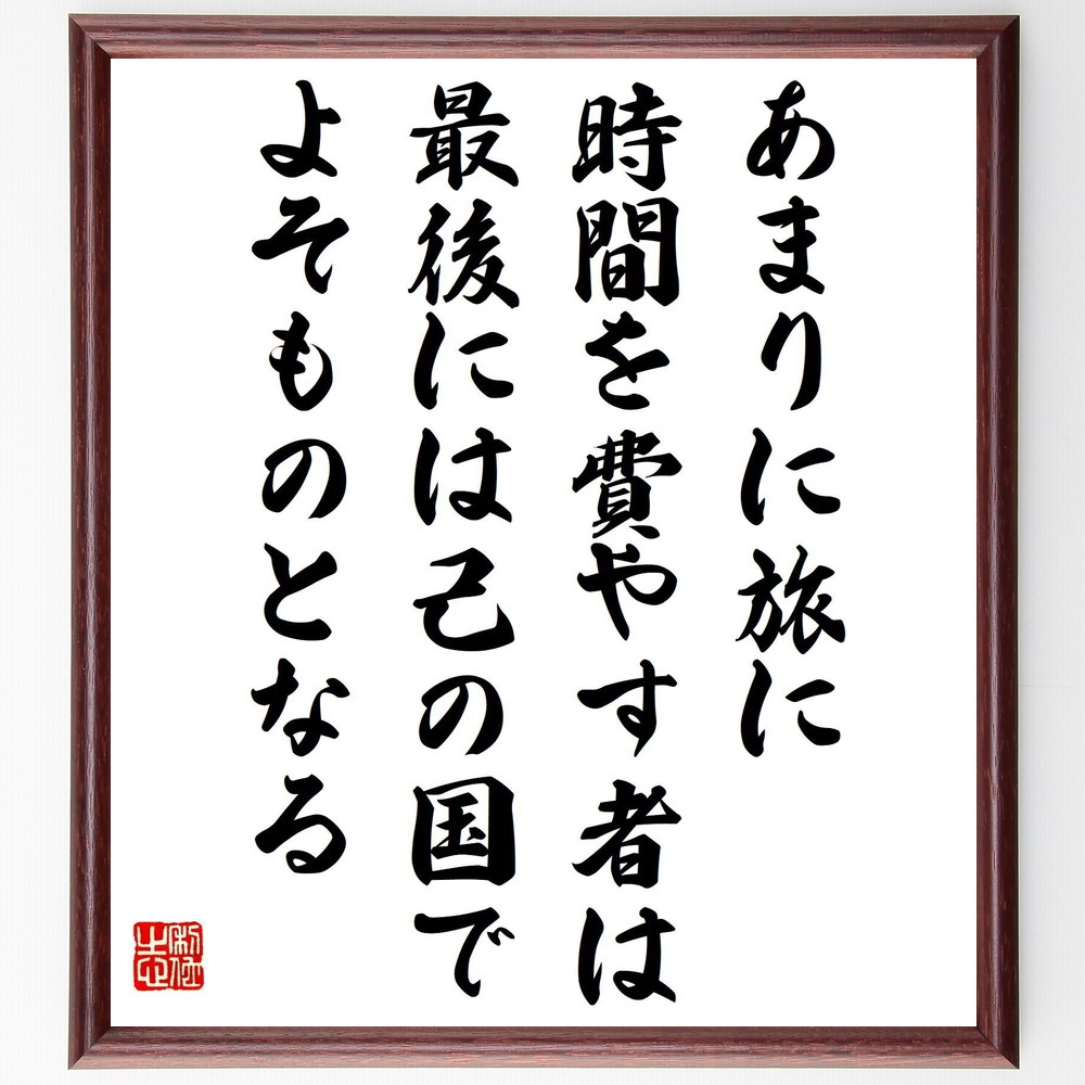 ルネ・デカルトの名言「あまりに旅に時間を費やす者は、最後には己の国でよそものとなる」手書き書道色紙額/受注後の毛筆直筆