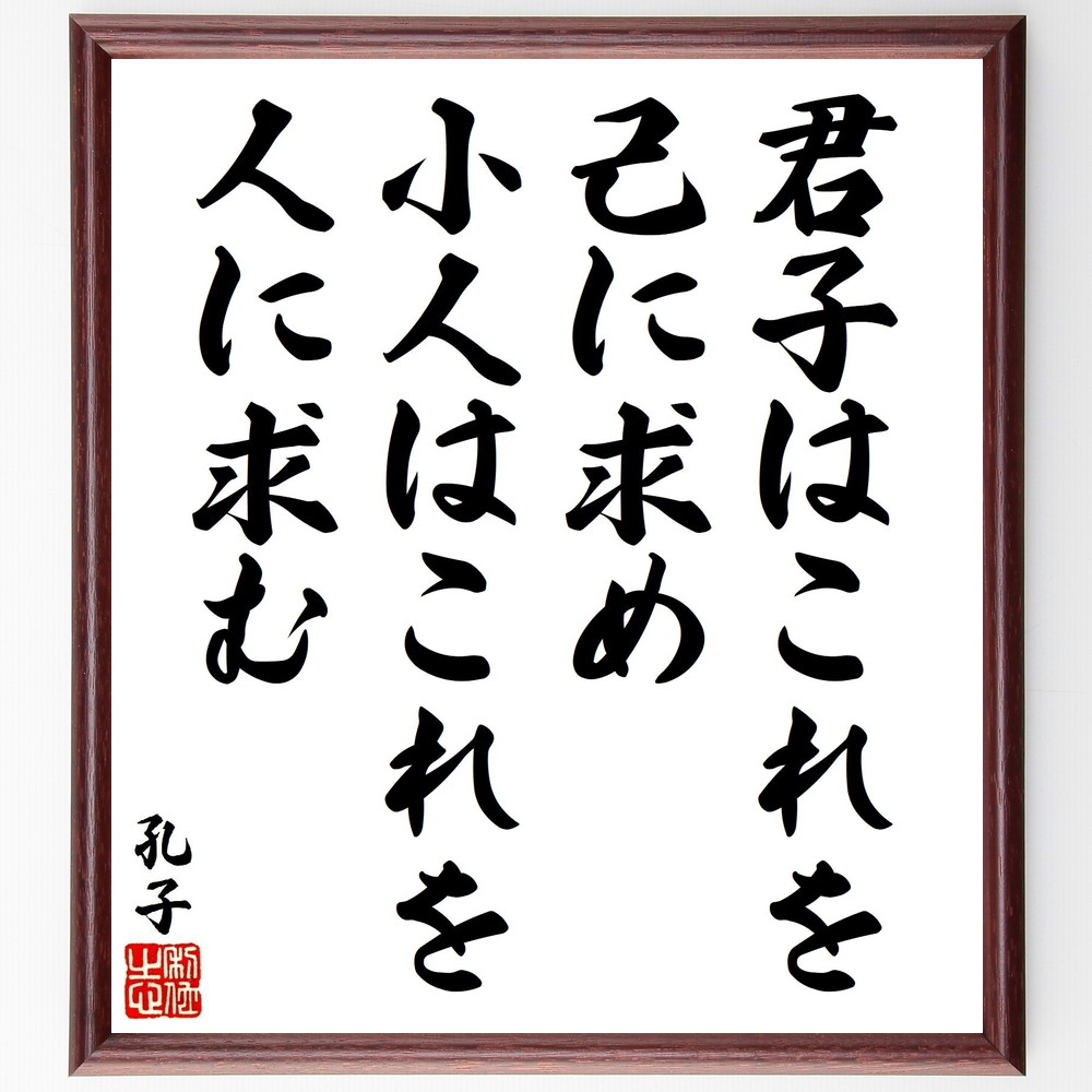 孔子の名言「君子はこれを己に求め、小人はこれを人に求む」手書き書道色紙額/受注後の毛筆直筆