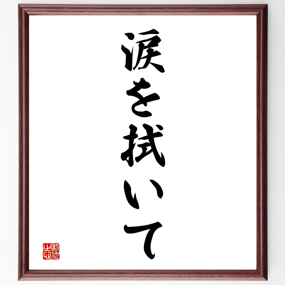 名言「涙を拭いて」手書き書道色紙額/受注後の毛筆直筆
