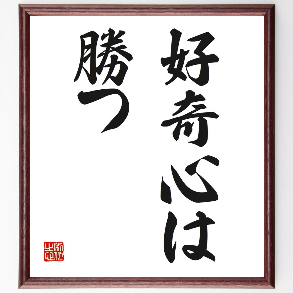 名言「好奇心は勝つ」手書き書道色紙額/受注後の毛筆直筆