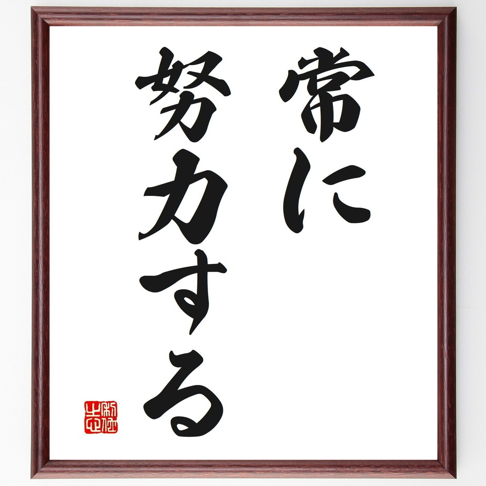 名言「常に努力する」手書き書道色紙額/受注後の毛筆直筆