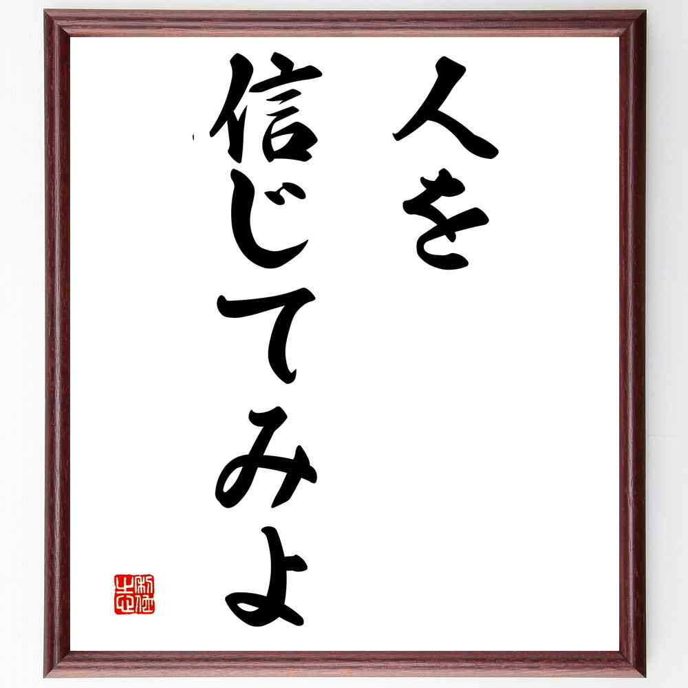 名言「人を信じてみよ」手書き書道色紙額/受注後の毛筆直筆