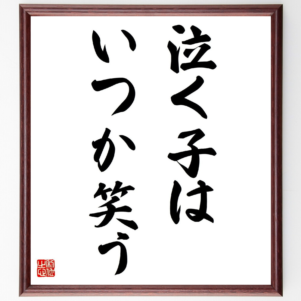 名言「泣く子はいつか笑う」手書き書道色紙額/受注後の毛筆直筆