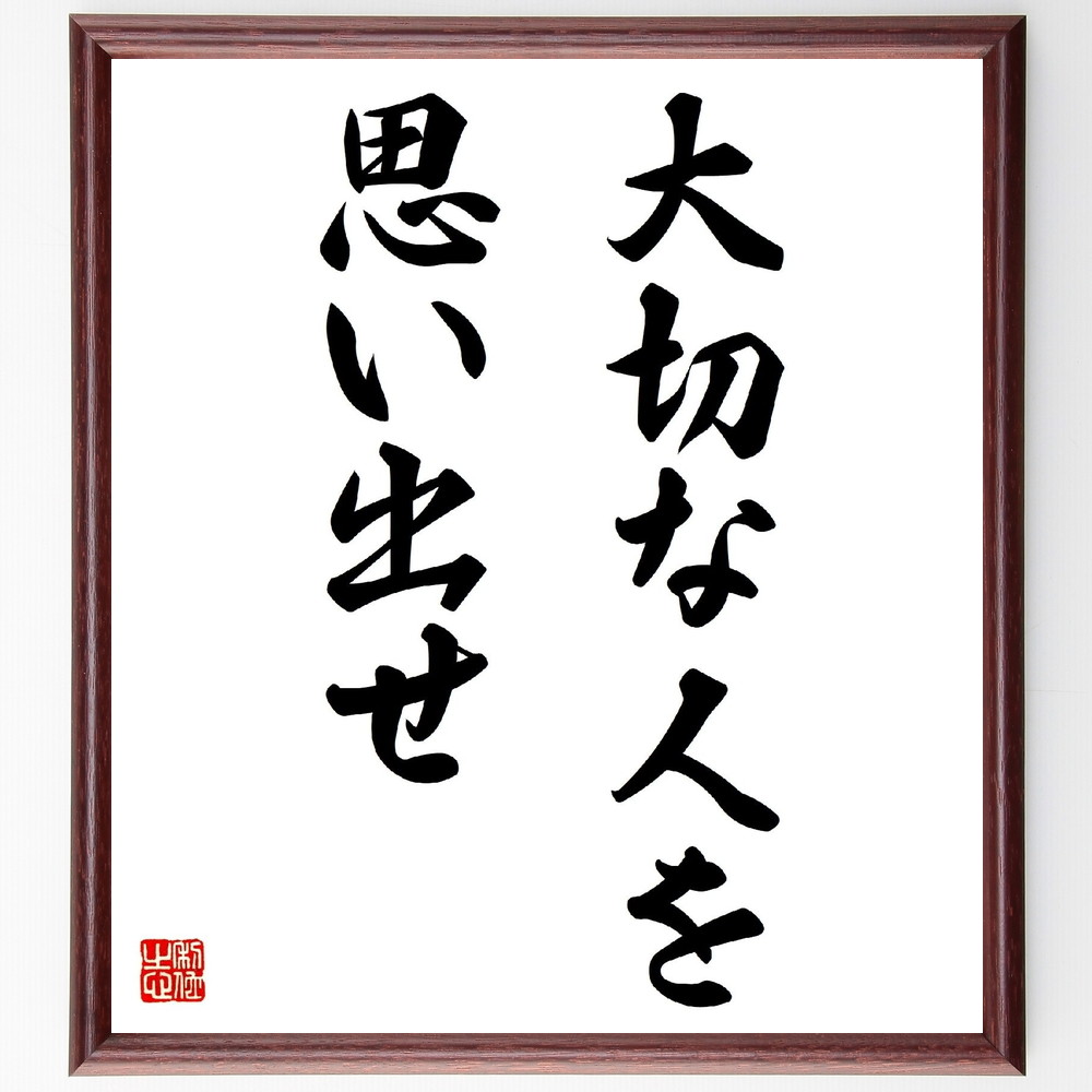 名言「大切な人を思い出せ」手書き書道色紙額/受注後の毛筆直筆