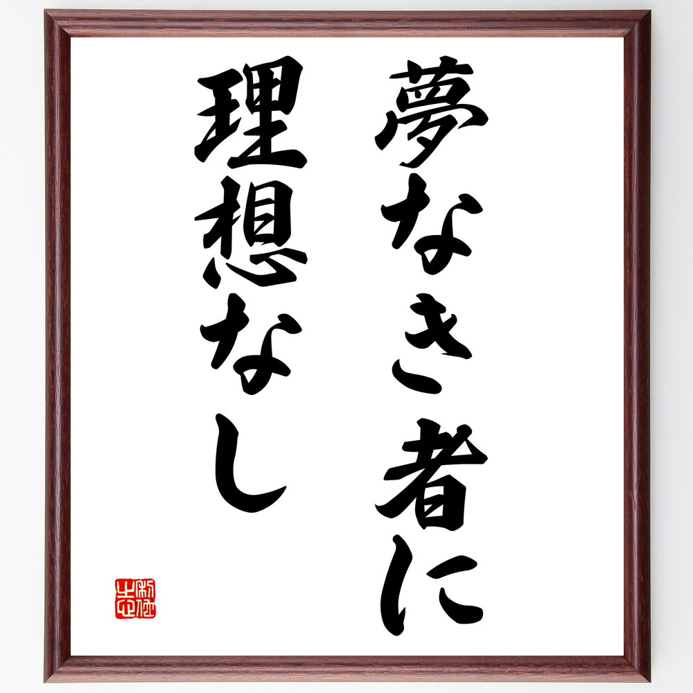 名言「夢なき者に理想なし」手書き書道色紙額/受注後の毛筆直筆