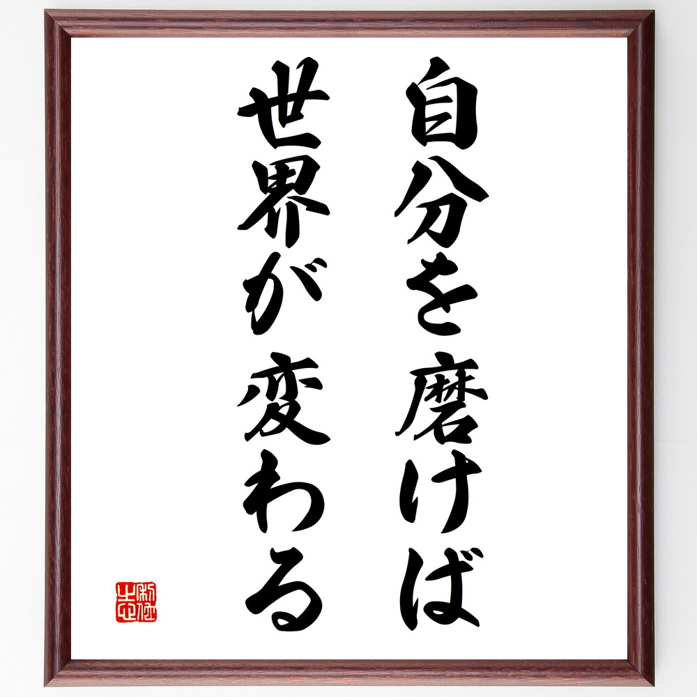 名言「自分を磨けば世界が変わる」手書き書道色紙額/受注後の毛筆直筆