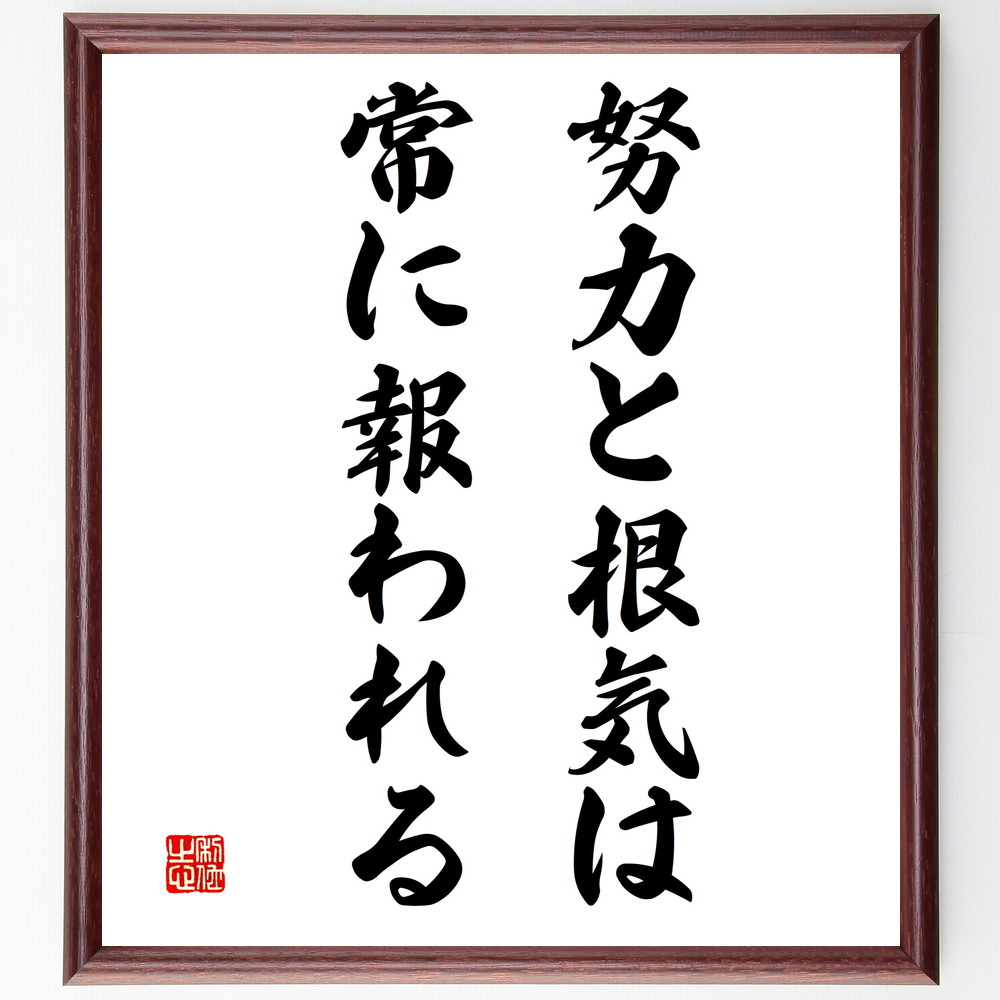 名言「努力と根気は常に報われる」手書き書道色紙額/受注後の毛筆直筆