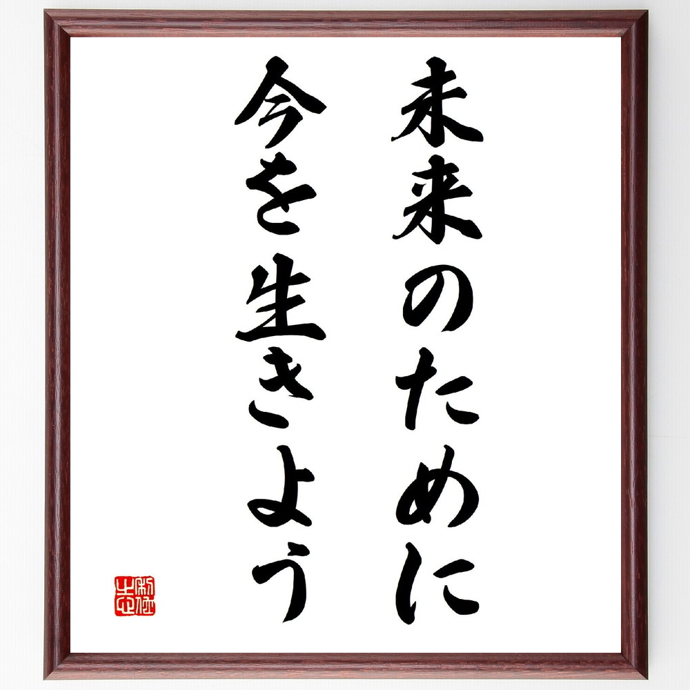 名言「未来のために今を生きよう」手書き書道色紙額/受注後の毛筆直筆