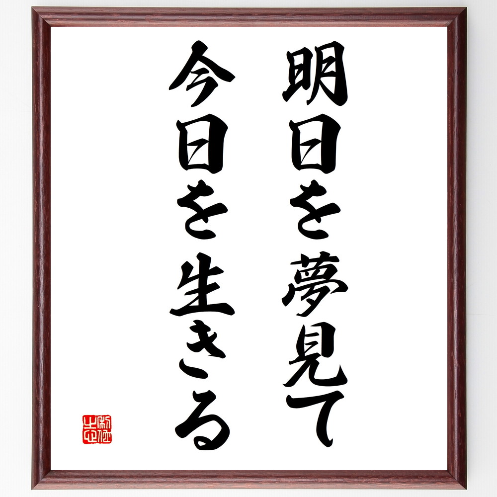 名言「明日を夢見て、今日を生きる」手書き書道色紙額/受注後の毛筆直筆