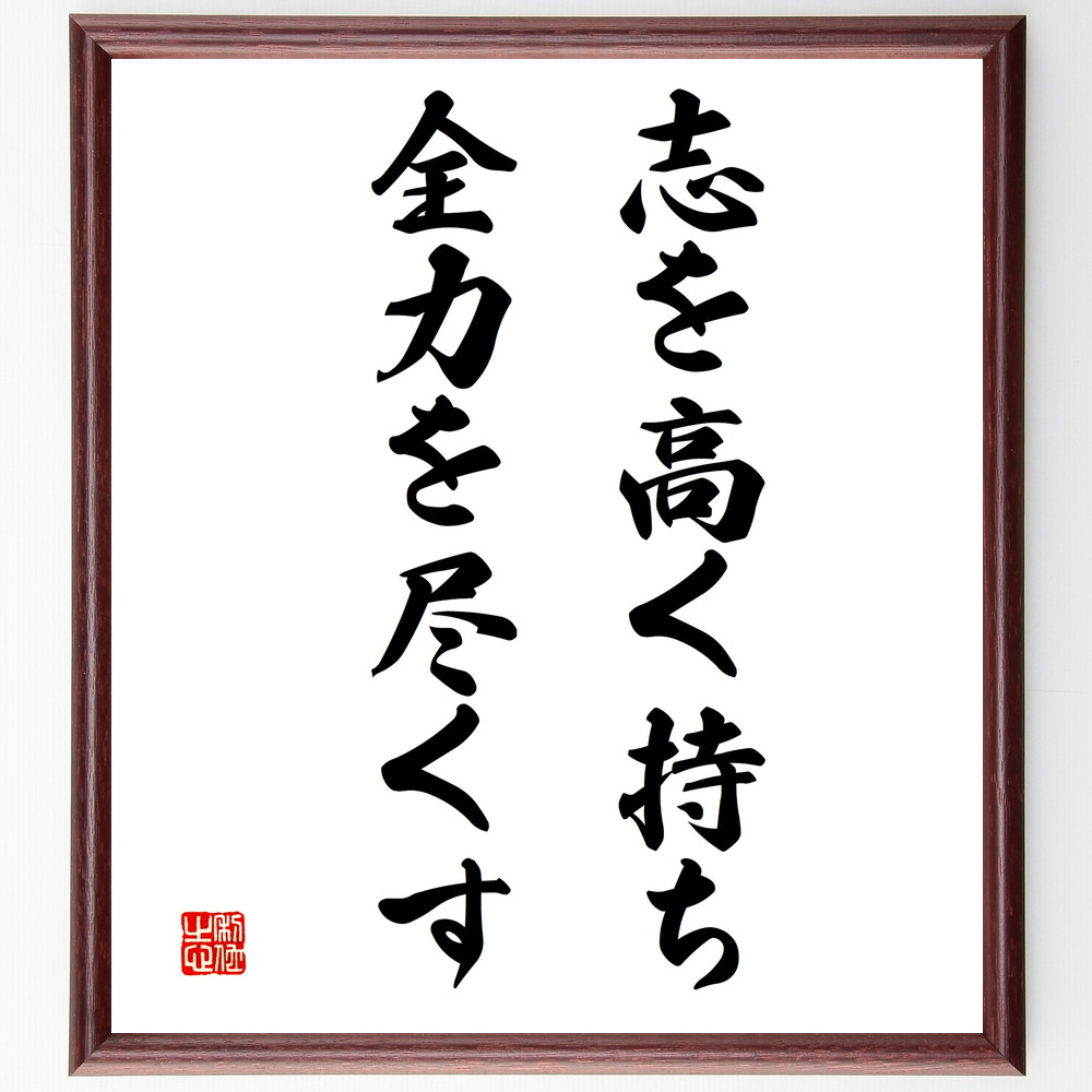 名言「志を高く持ち、全力を尽くす」手書き書道色紙額/受注後の毛筆直筆