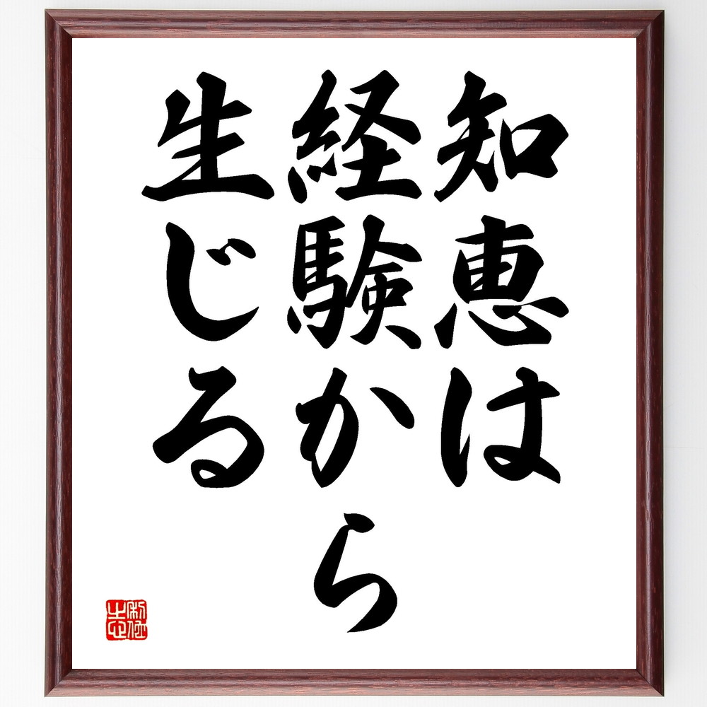 名言「知恵は経験から生じる」手書き書道色紙額/受注後の毛筆直筆