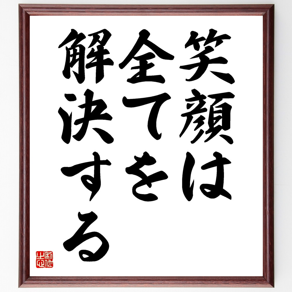 名言「笑顔は、全てを解決する」手書き書道色紙額/受注後の毛筆直筆