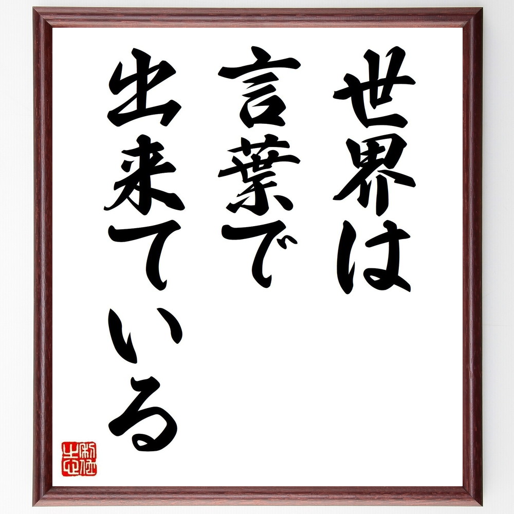 名言「世界は言葉で出来ている」手書き書道色紙額/受注後の毛筆直筆