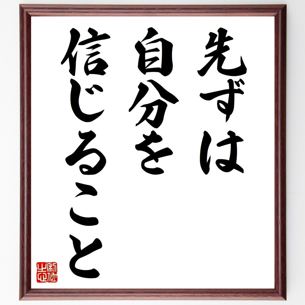名言「先ずは自分を信じること」手書き書道色紙額/受注後の毛筆直筆