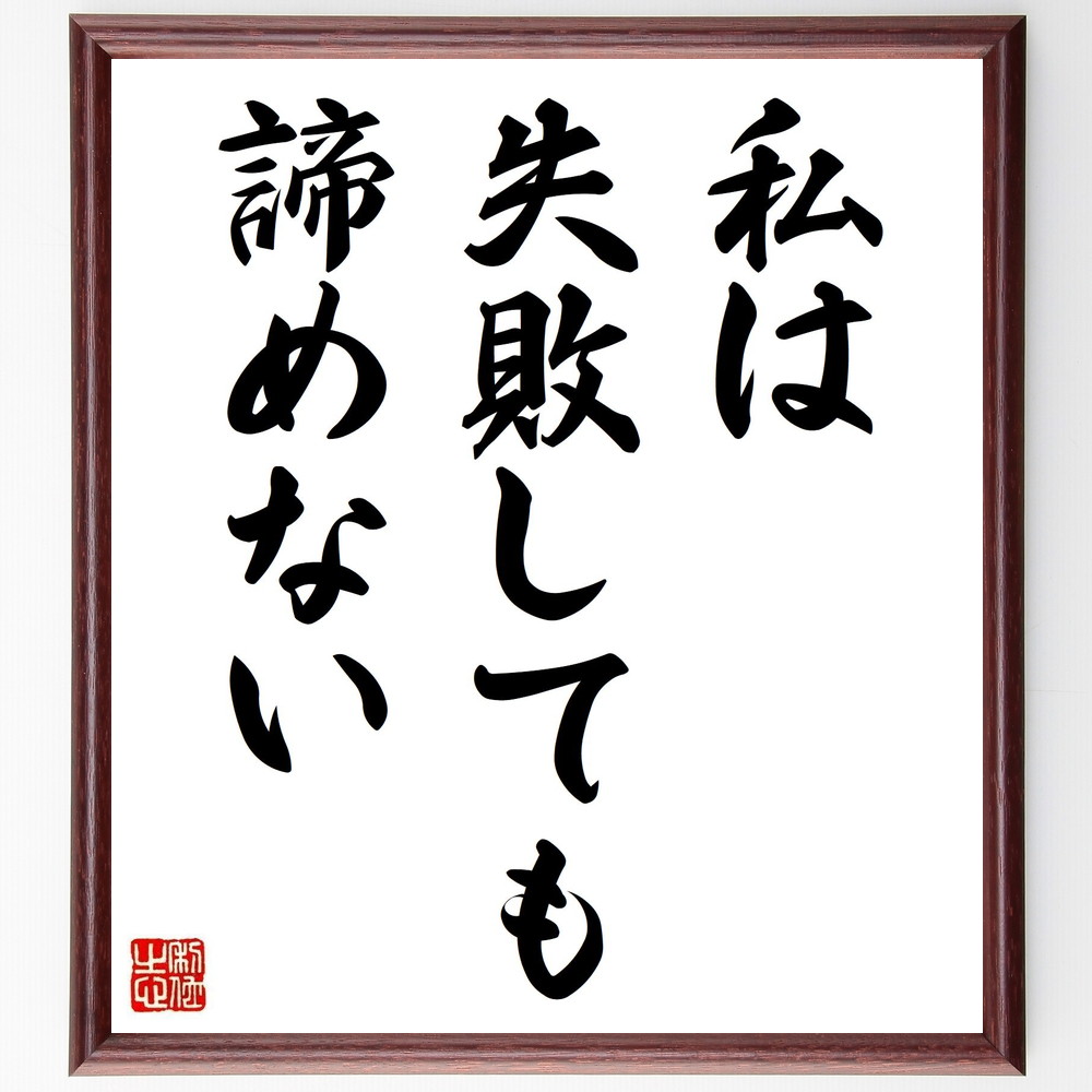 名言「私は失敗しても、諦めない」手書き書道色紙額/受注後の毛筆直筆