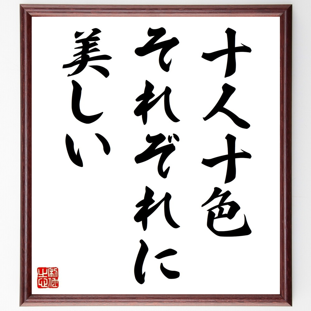 名言「十人十色、それぞれに美しい」手書き書道色紙額/受注後の毛筆直筆