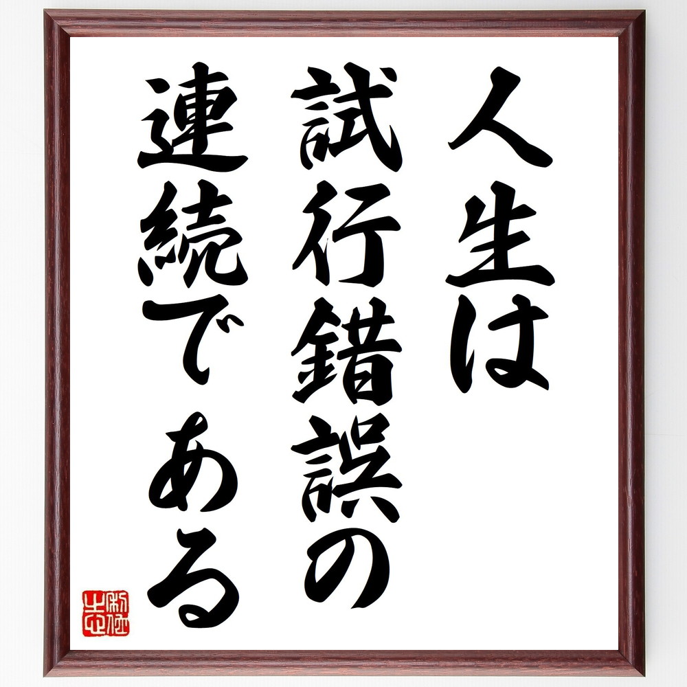 名言「人生は試行錯誤の連続である」手書き書道色紙額/受注後の毛筆直筆