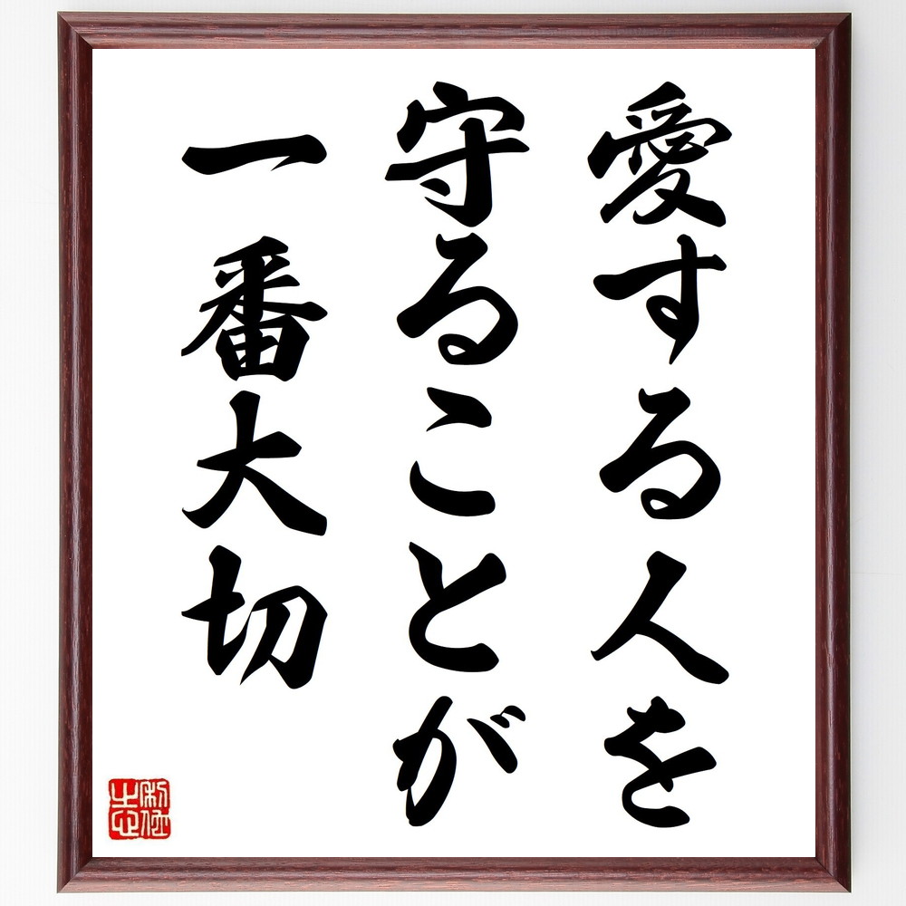 名言「愛する人を守ることが一番大切」手書き書道色紙額/受注後の毛筆直筆
