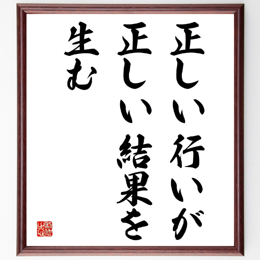 名言「正しい行いが正しい結果を生む」手書き書道色紙額/受注後の毛筆直筆