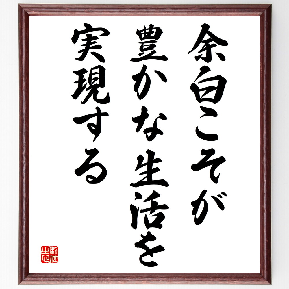 名言「余白こそが豊かな生活を実現する」手書き書道色紙額/受注後の毛筆直筆