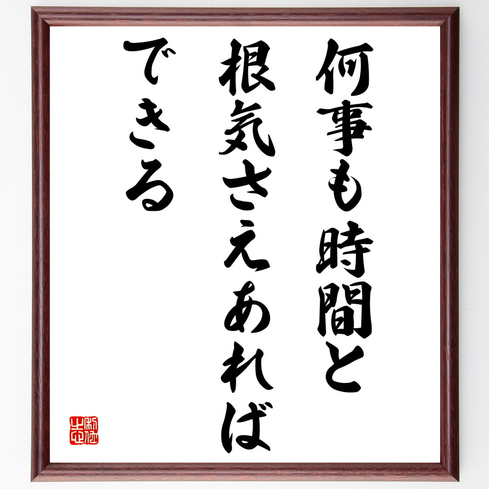 名言「何事も時間と根気さえあればできる」手書き書道色紙額/受注後の毛筆直筆