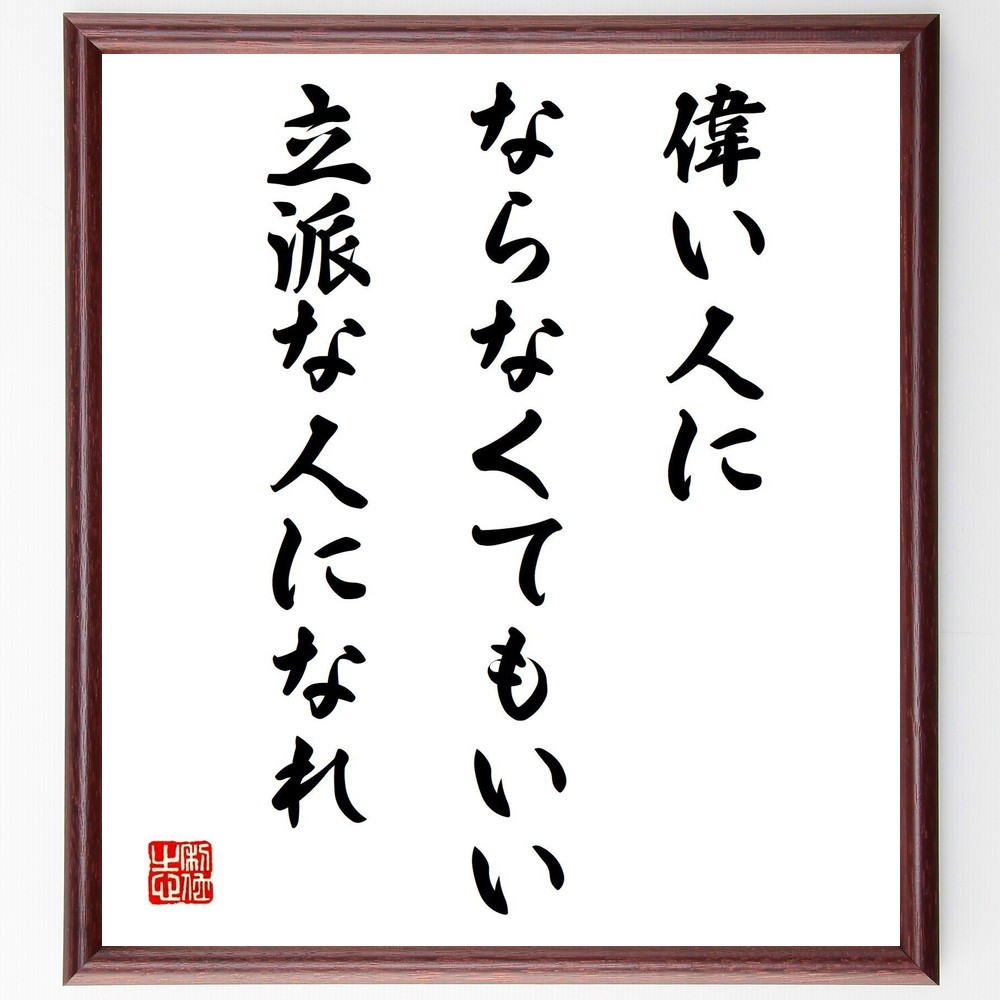 名言「偉い人にならなくてもいい、立派な人になれ」手書き書道色紙額/受注後の毛筆直筆