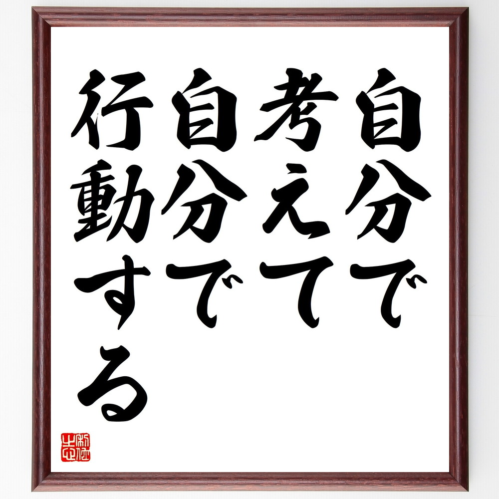 名言「自分で考えて、自分で行動する」手書き書道色紙額/受注後の毛筆直筆
