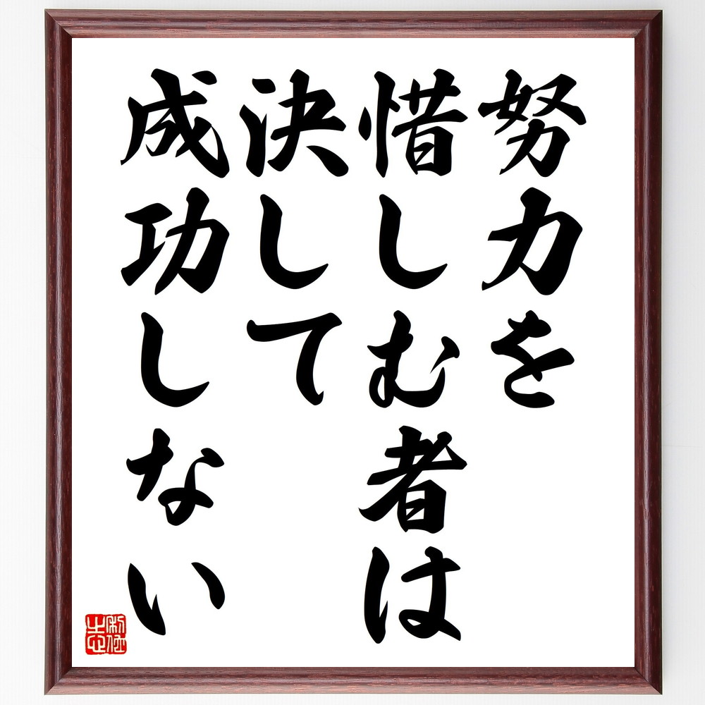 名言「努力を惜しむ者は、決して成功しない」手書き書道色紙額/受注後の毛筆直筆