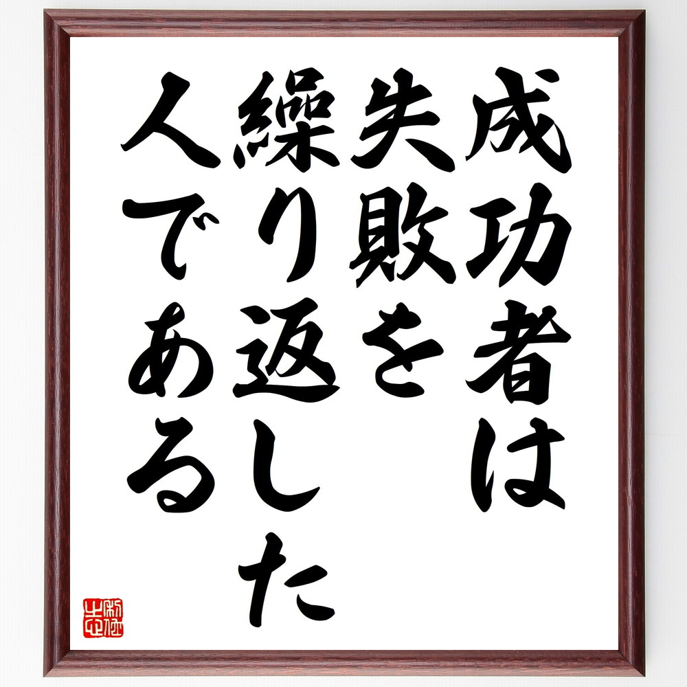 名言「成功者は、失敗を繰り返した人である」手書き書道色紙額/受注後の毛筆直筆