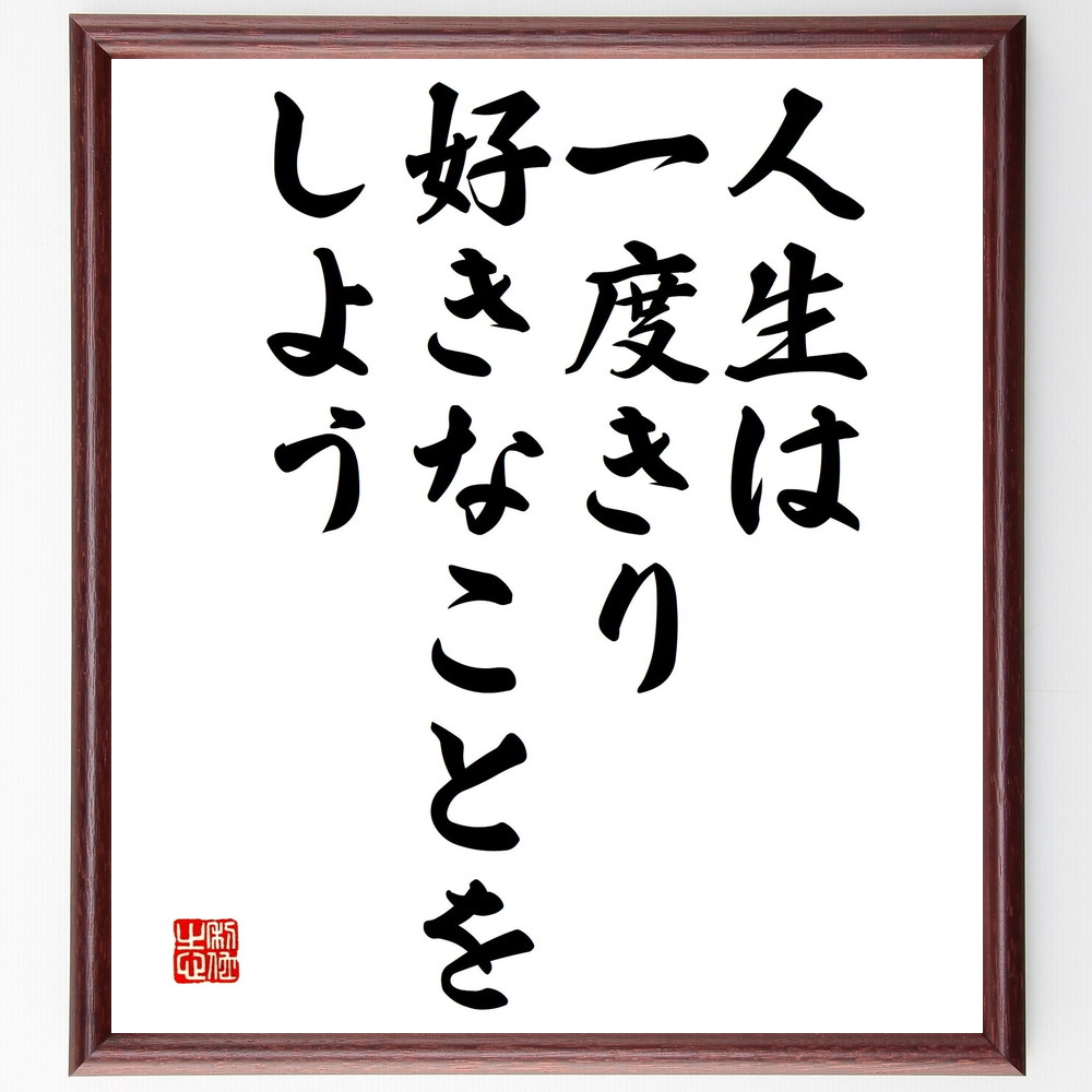 名言「人生は一度きり、好きなことをしよう」手書き書道色紙額/受注後の毛筆直筆