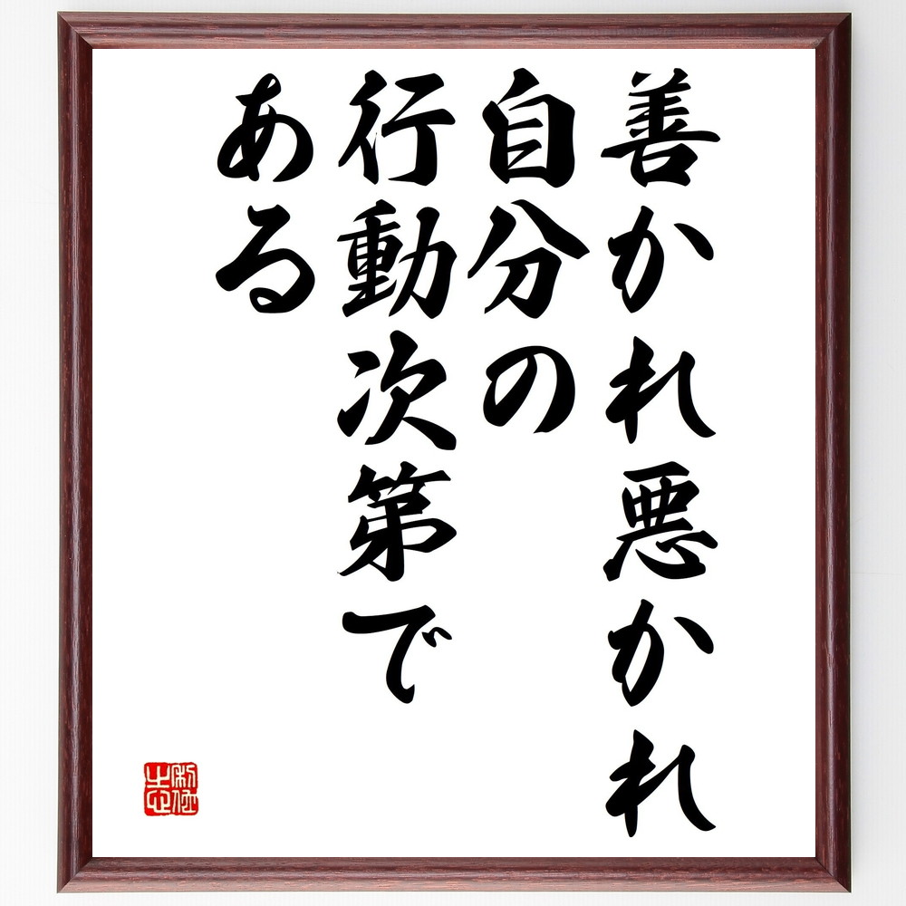 名言「善かれ悪かれ、自分の行動次第である」手書き書道色紙額/受注後の毛筆直筆