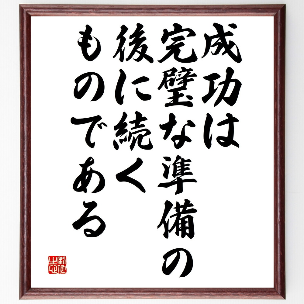 名言「成功は完璧な準備の後に続くものである」手書き書道色紙額/受注後の毛筆直筆