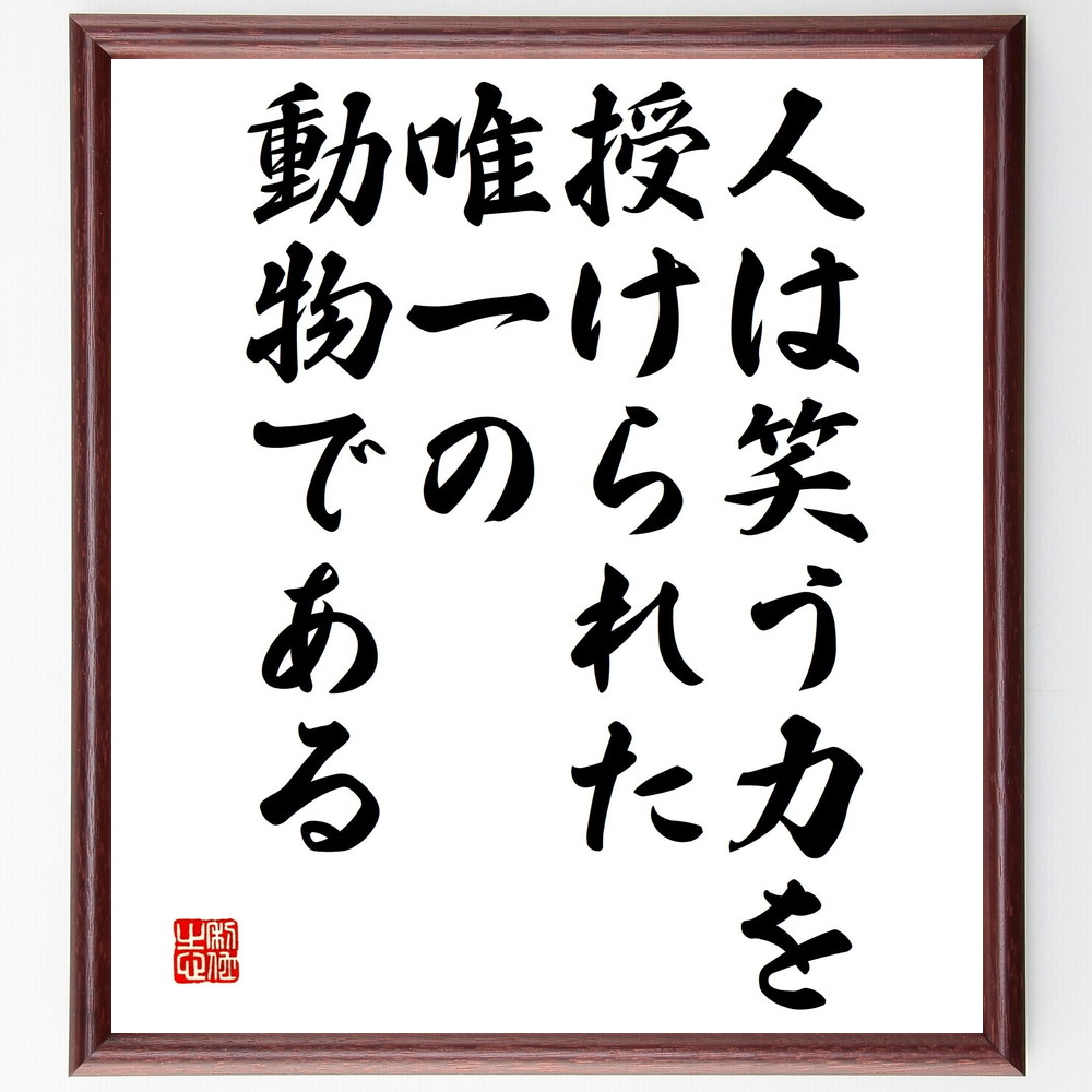 名言「人は笑う力を授けられた唯一の動物である」手書き書道色紙額/受注後の毛筆直筆