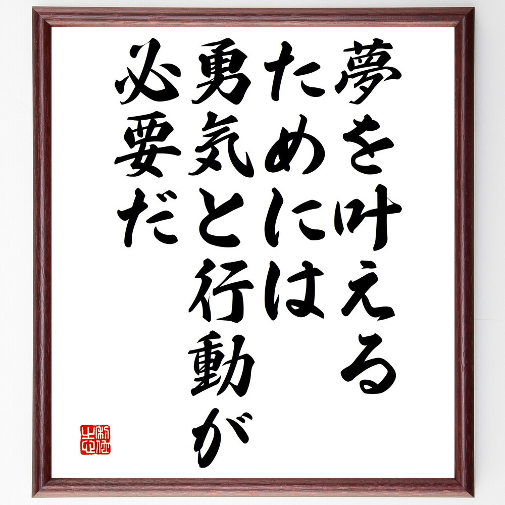 名言「夢を叶えるためには、勇気と行動が必要だ」手書き書道色紙額/受注後の毛筆直筆