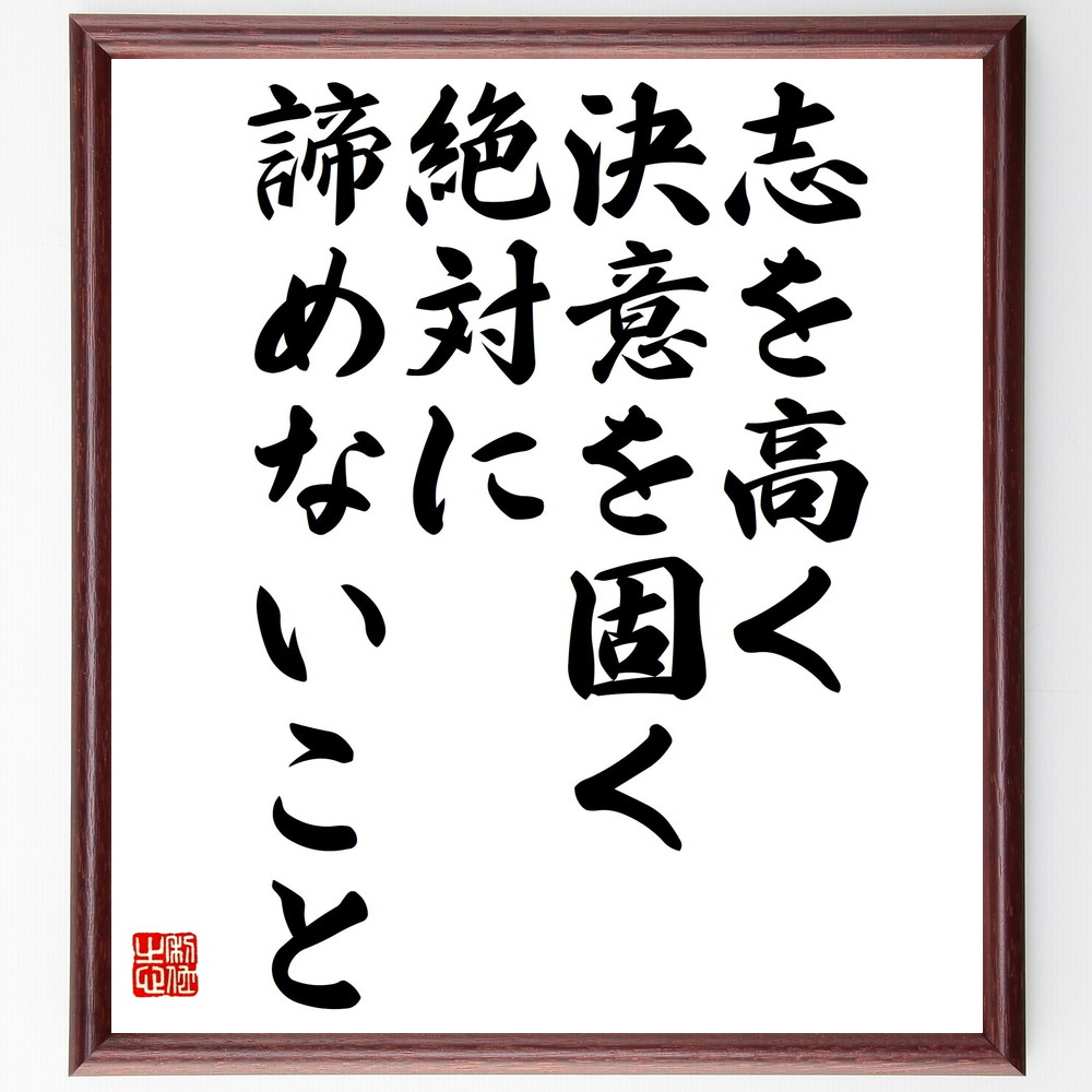 名言「志を高く、決意を固く、絶対に諦めないこと」手書き書道色紙額/受注後の毛筆直筆