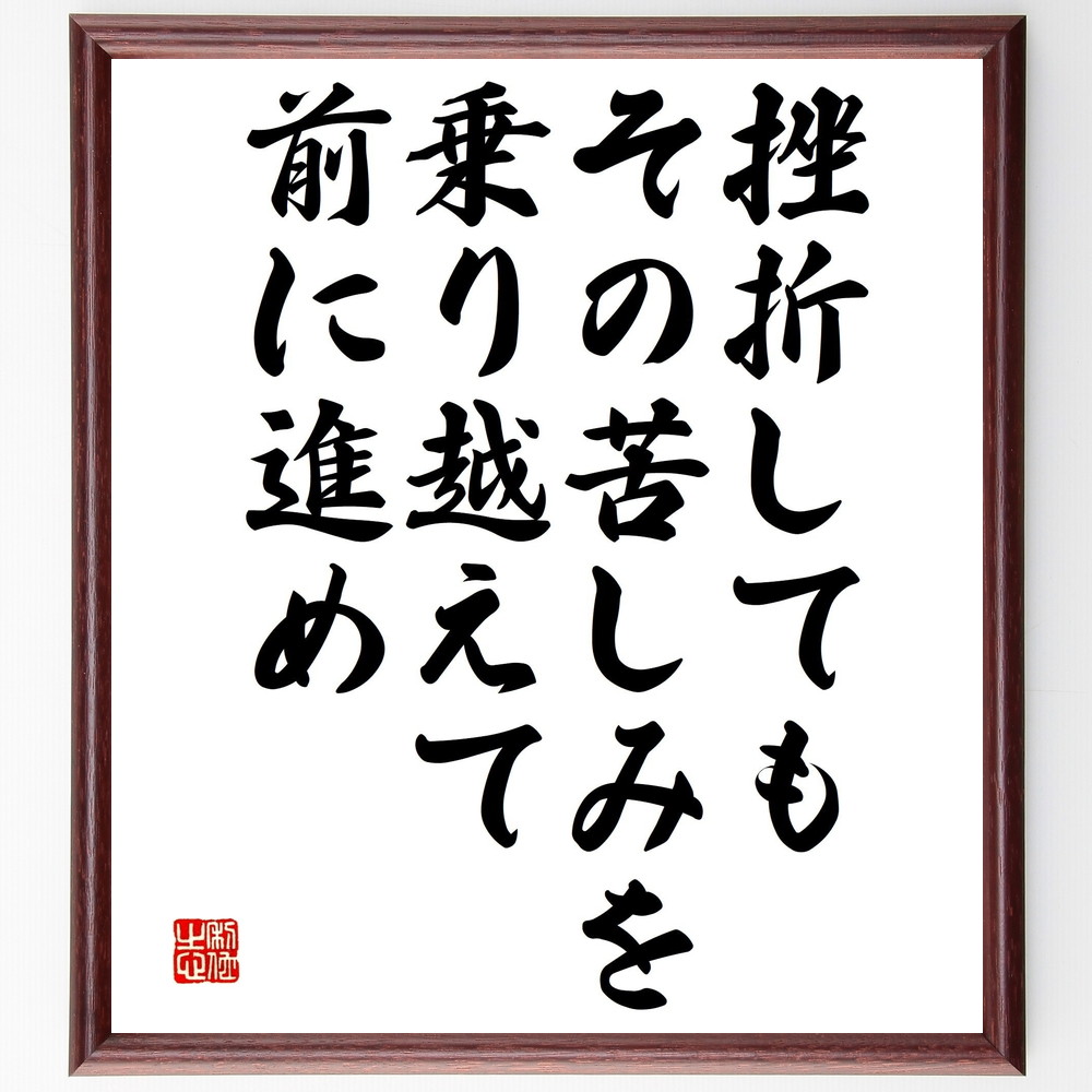 名言「挫折しても、その苦しみを乗り越えて、前に進め」手書き書道色紙額/受注後の毛筆直筆