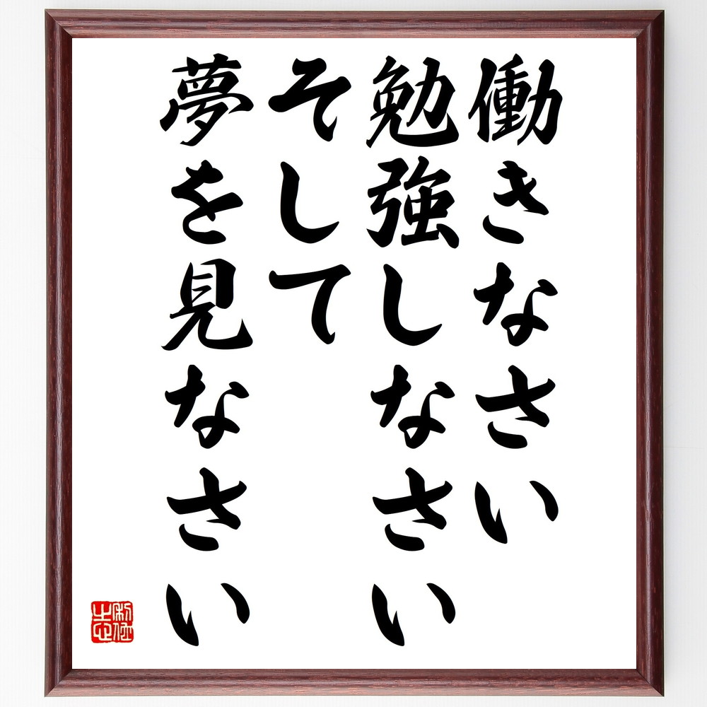 名言「働きなさい、勉強しなさい、そして、夢を見なさい」手書き書道色紙額/受注後の毛筆直筆