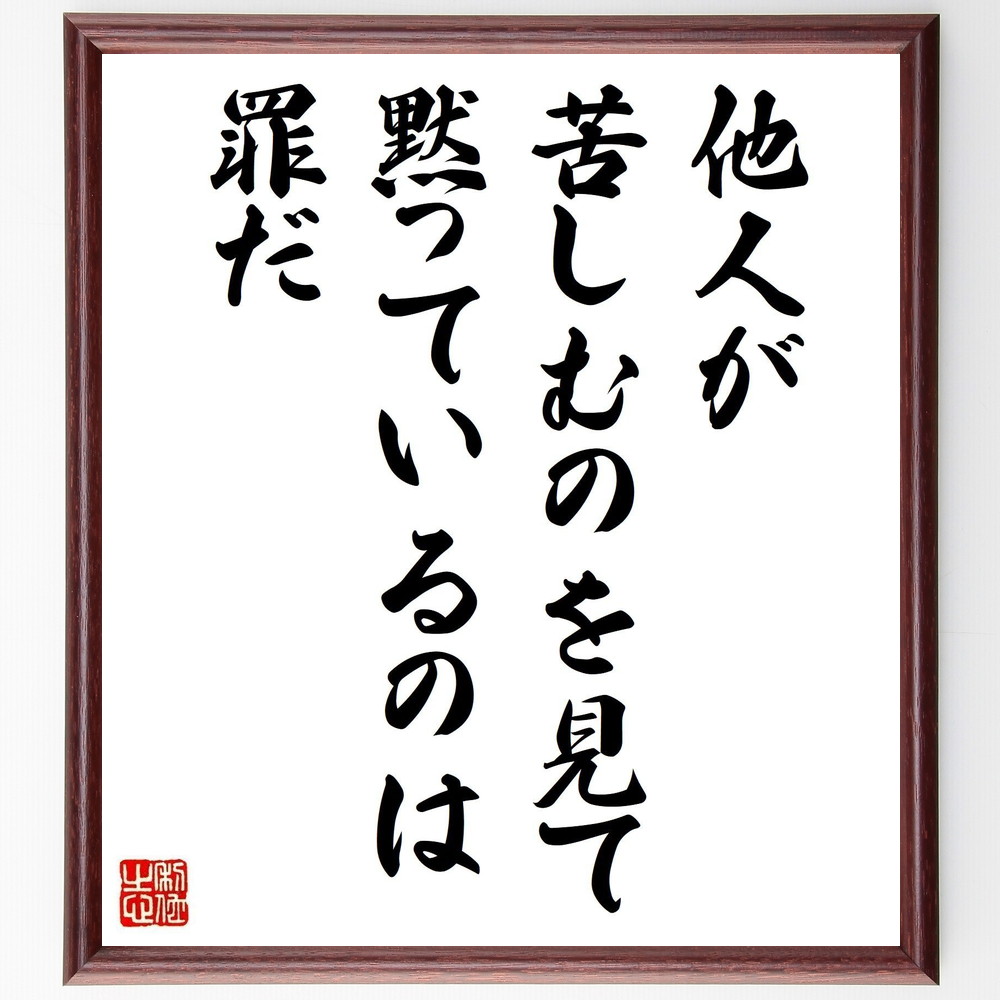 名言「他人が苦しむのを見て、黙っているのは罪だ」手書き書道色紙額/受注後の毛筆直筆
