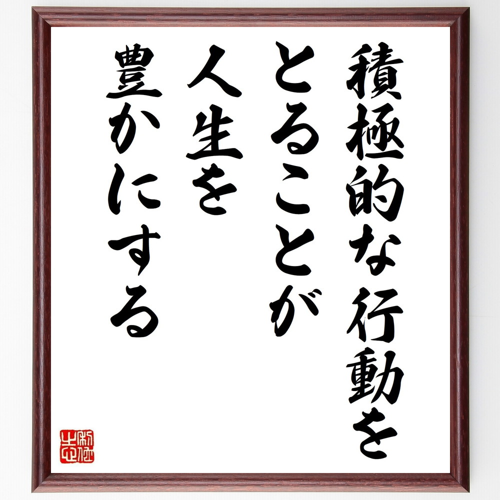 名言「積極的な行動をとることが、人生を豊かにする」手書き書道色紙額/受注後の毛筆直筆