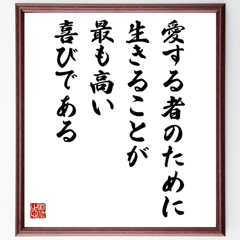 名言「愛する者のために生きることが最も高い喜びである」手書き書道色紙額/受注後の毛筆直筆