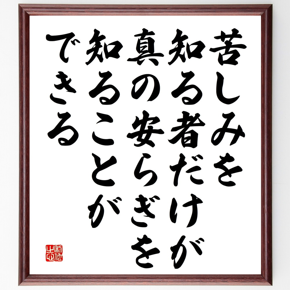 名言「苦しみを知る者だけが、真の安らぎを知ることができる」手書き書道色紙額/受注後の毛筆直筆