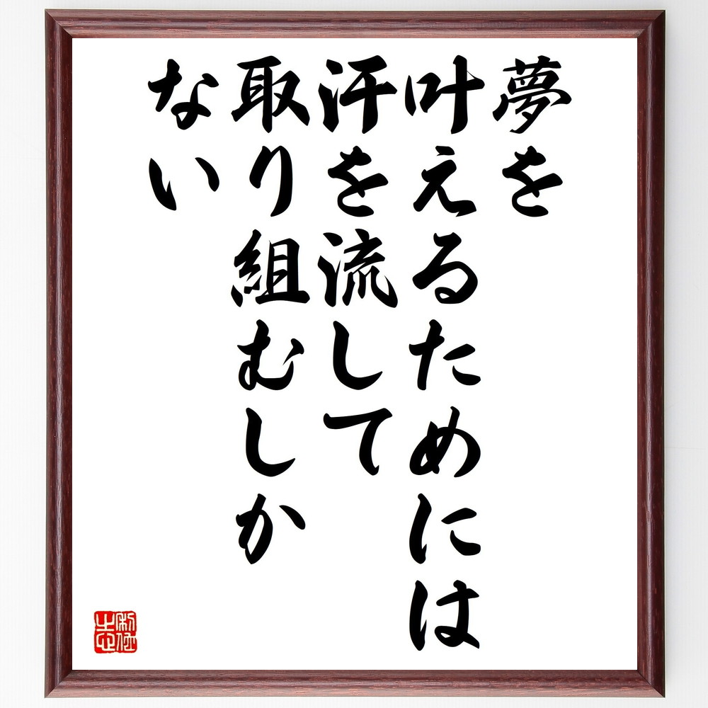 名言「夢を叶えるためには、汗を流して取り組むしかない」手書き書道色紙額/受注後の毛筆直筆